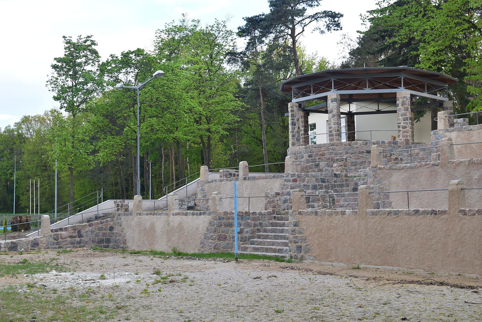Prace inwestycyjne dotyczyły przebudowy i rozbudowy budynku głównego z salą sportową razem z instalacjami zewnętrznymi. Przebudowa budynku zaplecza klubowego, remontu muszli koncertowej, przebudowa rekreacyjnej i widokowej wiaty z nadbudową zadaszenia, przebudowa i budowa schodów terenowych i murów oporowych, naprawy historycznych słupów bramy wjazdowej na stadion, rozbudowa i modernizacja kanalizacji sanitarnej, deszczowej i wodociągowej oraz centralnego ogrzewania, zagospodarowanie terenu wokół rozbudowanego kompleksu.